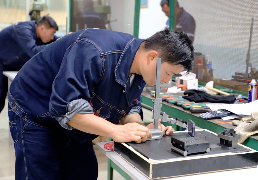 本次大賽采用“理論考試+實(shí)際操作”雙環(huán)節(jié)考核模式,全面檢驗(yàn)選手的專業(yè)素養(yǎng)與實(shí)操能力。焊工操作間內(nèi)火花飛濺,選手手持焊槍精準(zhǔn)控制焊接角度與速度,力求焊縫平整牢固;鉗工賽場上,選手俯身工作臺前,以指尖力度與眼神專注雕琢作品細(xì)節(jié)。選手們各展所長,盡顯扎實(shí)功底,以精湛技藝生動詮釋了新時代產(chǎn)業(yè)工人追求卓越、精益求精的工匠精神。